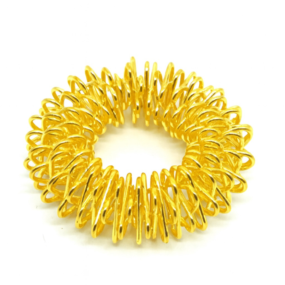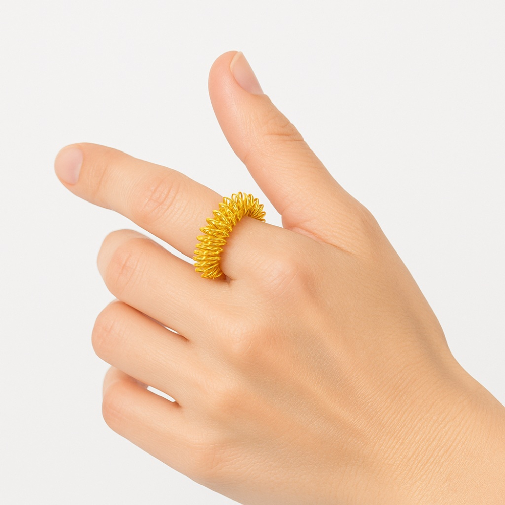Díky pružné kovové konstrukci se zlatým (Yang) povrchem vytváří prsten příjemný, jemně stimulační tlak – podobný akupresuře. Je ideální na krátké „mikropřestávky“ během dne, při práci na počítači, s mobilem nebo po fyzické zátěži rukou.